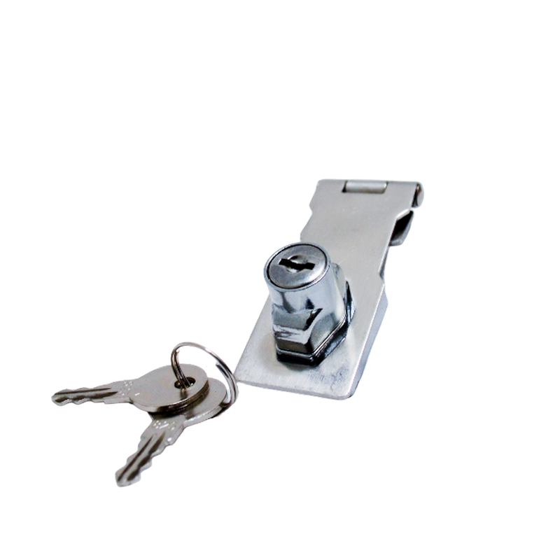 Portacandado metálico de 3 pulgadas con chapa de seguridad integrada, ideal para reforzar el cierre de puertas, cajones, maleteros, armarios o portones. Combina la resistencia de un portacandado tradicional con la practicidad de una cerradura incorporada, ofreciendo doble seguridad en un solo producto.